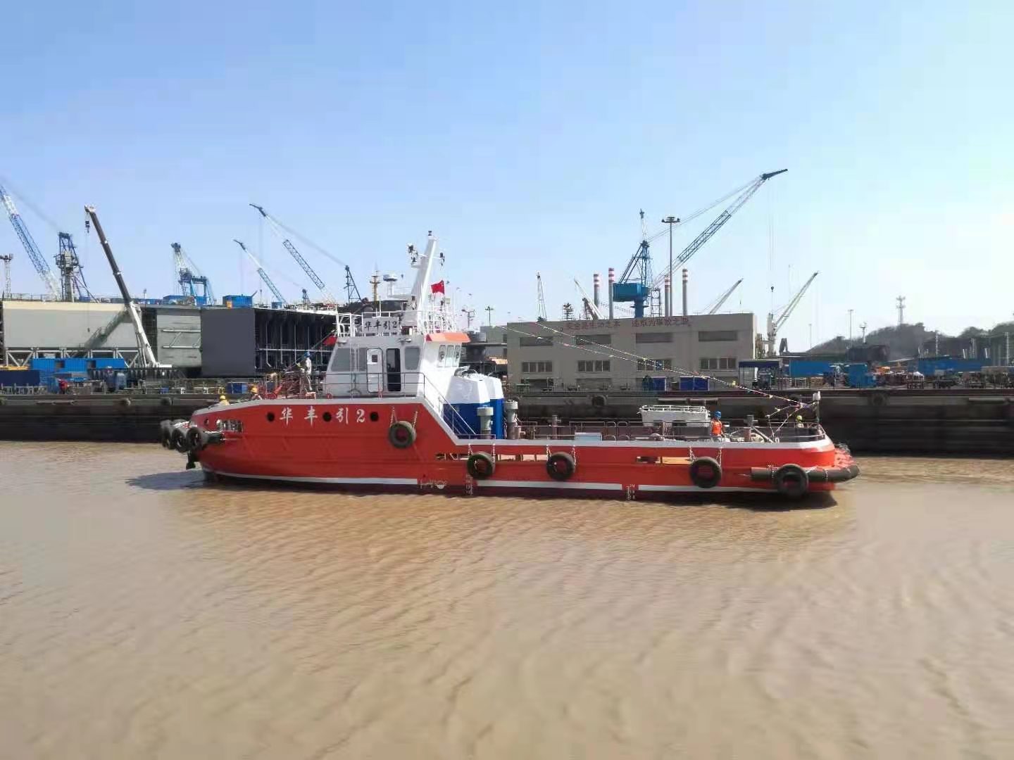 “华丰引2”由我院按照海事服务锚地供应“舟山船型”的技术要求进行设计。主要用于海上船舶物质食品、物料、备件、润滑油以及油漆等船用物资供应,并最多可搭载11名乘客。