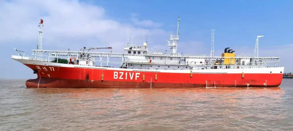 9月12日,由我院为国鸿远洋渔业设计的鱿钓船“国鸿77”顺利首航!“国鸿77”号从马峙门锚地起锚首航开赴阿根廷海域开展鱿鱼捕捞作业,该船一昼夜能捕捞70~90吨鱿鱼,10天左右就能装满850吨仓储量,仓储及捕捞量列全省第一。