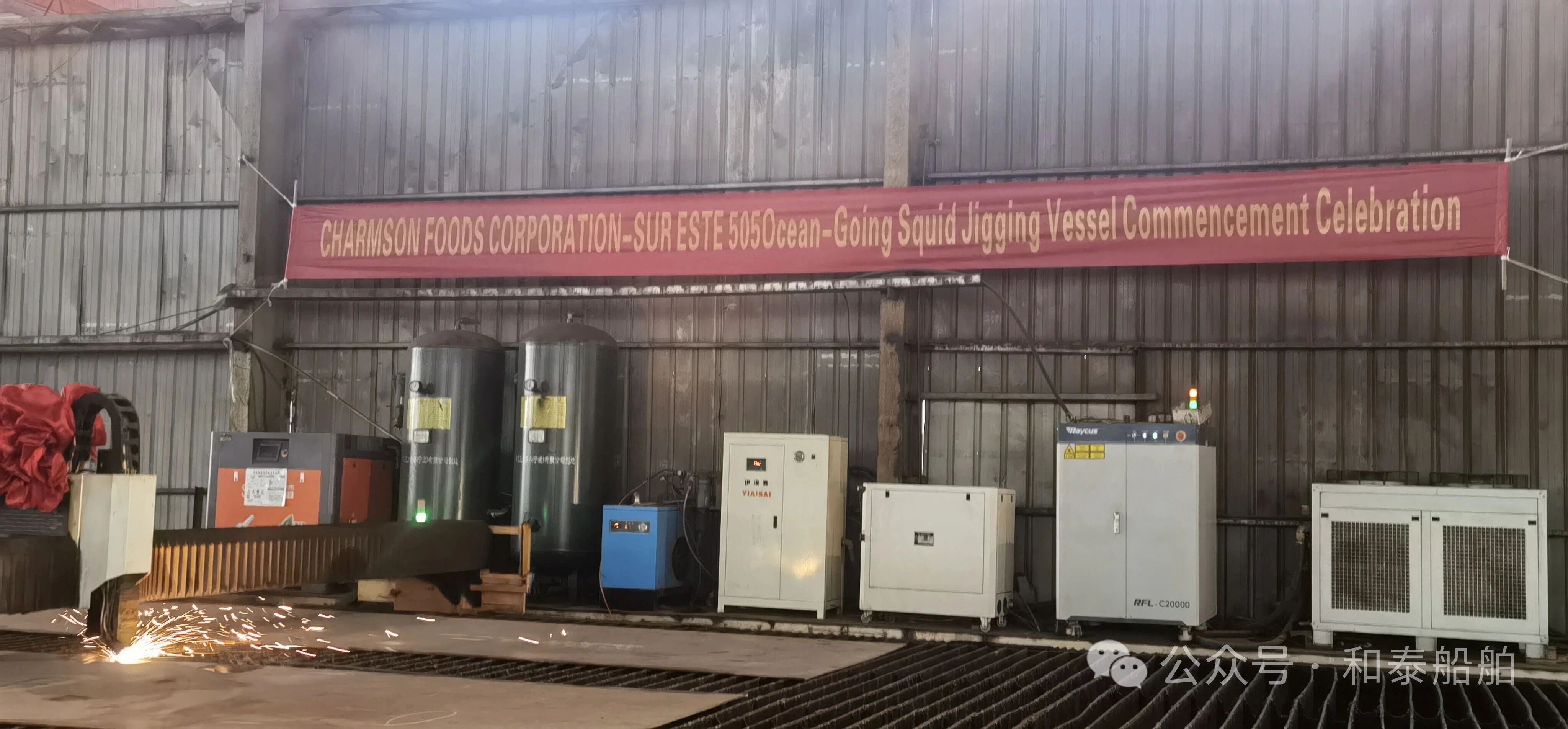 三、2026年1月20日,由我院为CHAMPION FOODS CORPORATION设计的77m远洋鱿鱼钓船在和泰船厂正式开工!