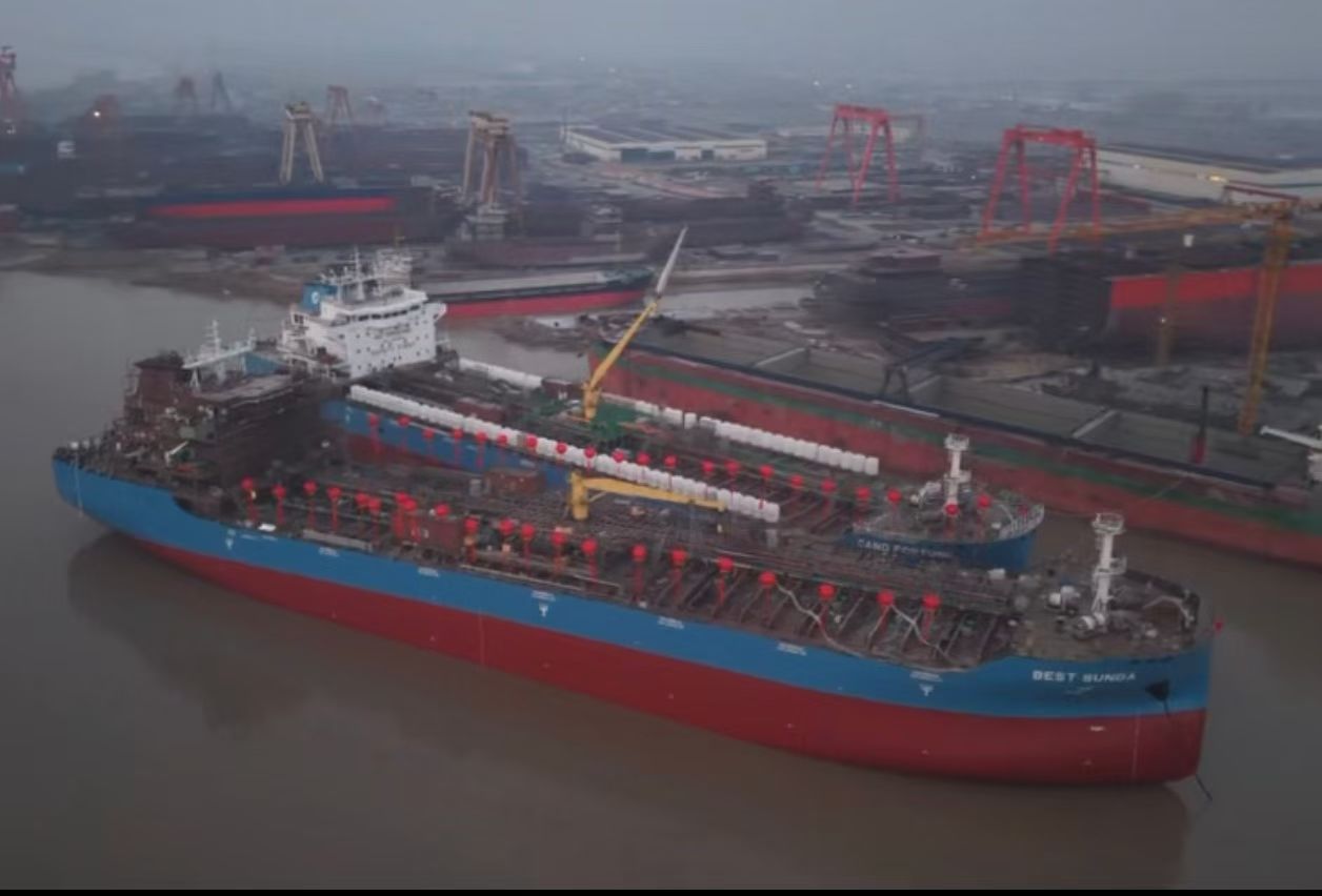 七、2026年2月1日,由我院为香港振业船务设计的23500DWT化学品油船2#船“BEST SUNDA”在江苏志远船业顺利上水!